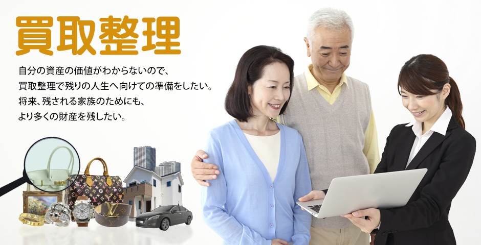 ご自宅に眠っている資産を活用して、今まで以上に人生を充実したものにしませんか?お客様の意思でご家族にのこす事もできます。時計やバッグなどの品物から、自動車や、土地・建物などの不動産に至るまで幅広く鑑定士が査定し、その運用をご提案します。